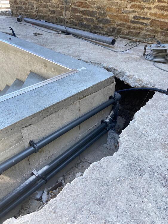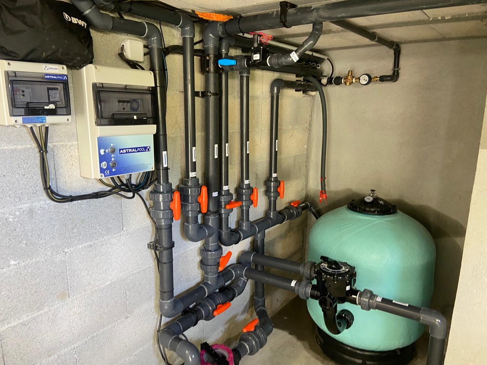 Ensuite vient la création et l'installation du local technique comprenant divers équipements tels que le coffret trois sondes de remplissage automatique, le coffret de filtration et d'éclairage ainsi que toute la machinerie pompe etc.