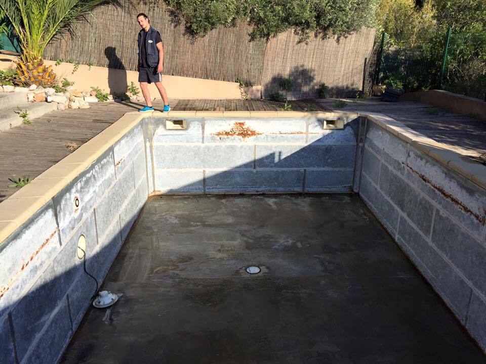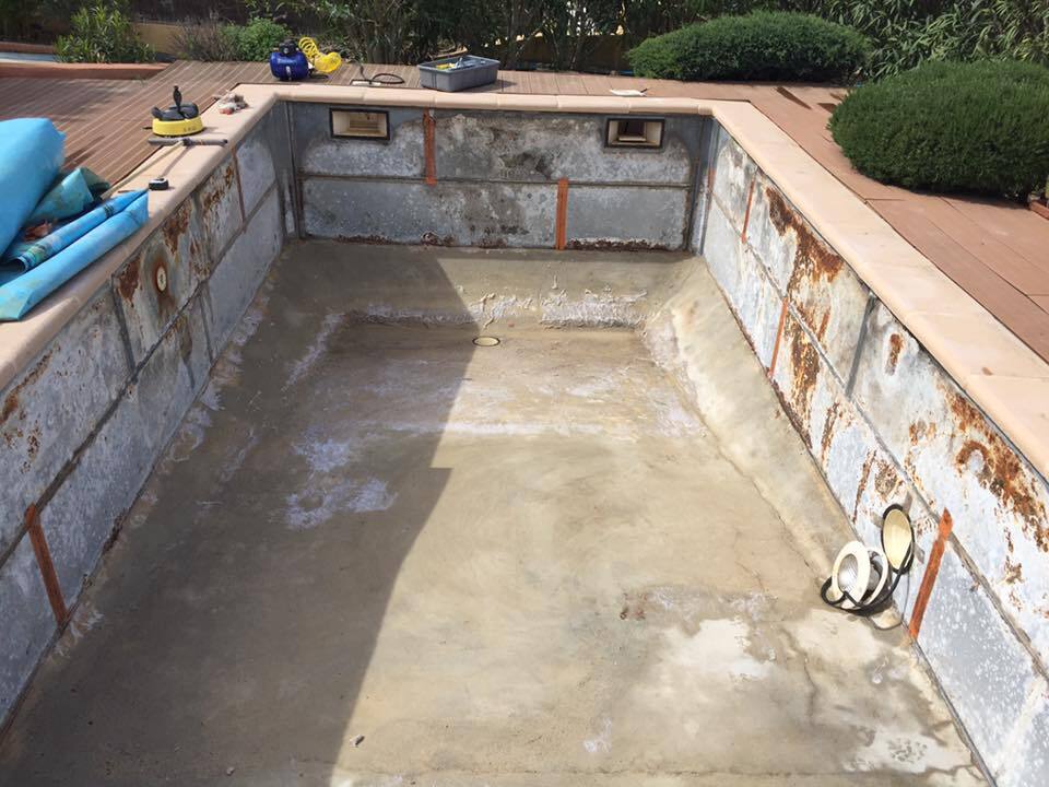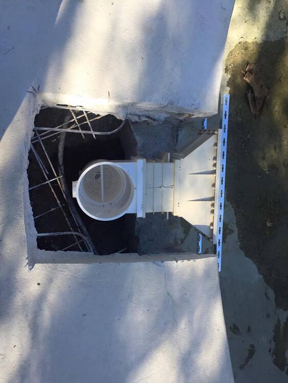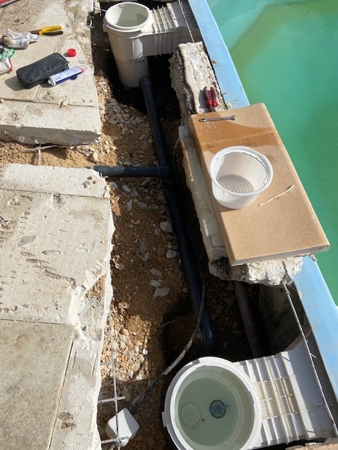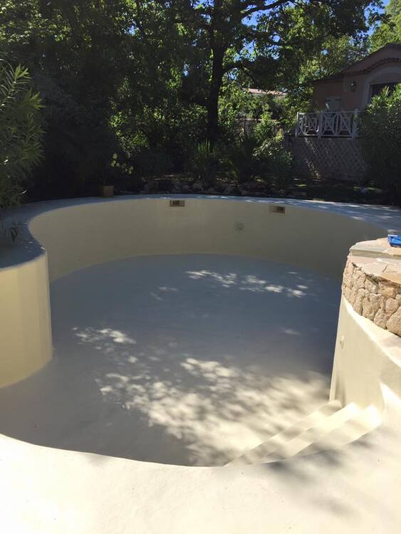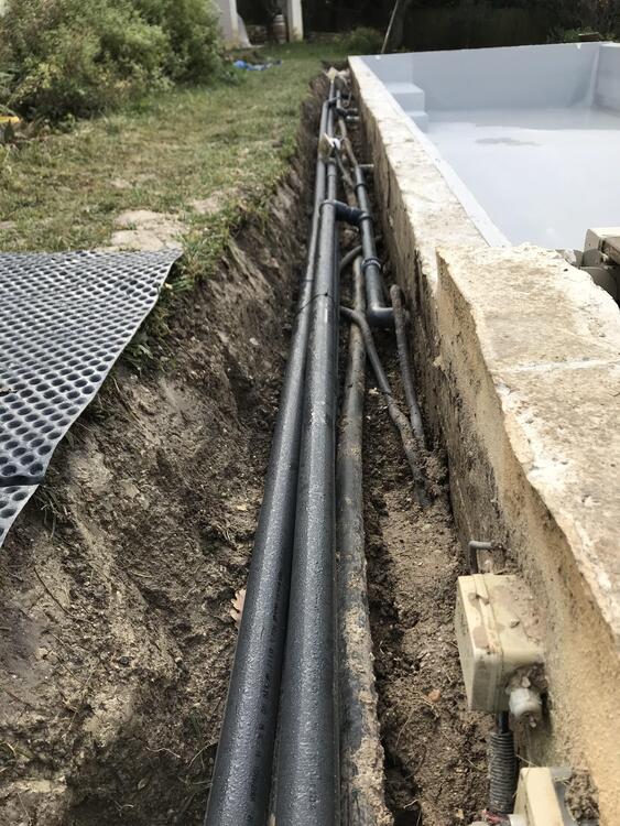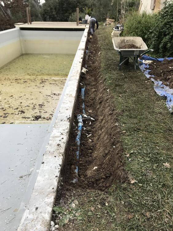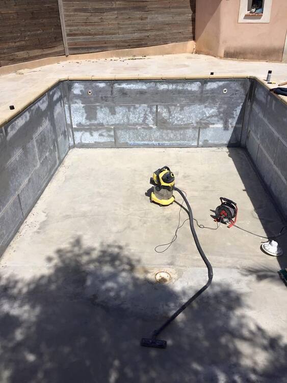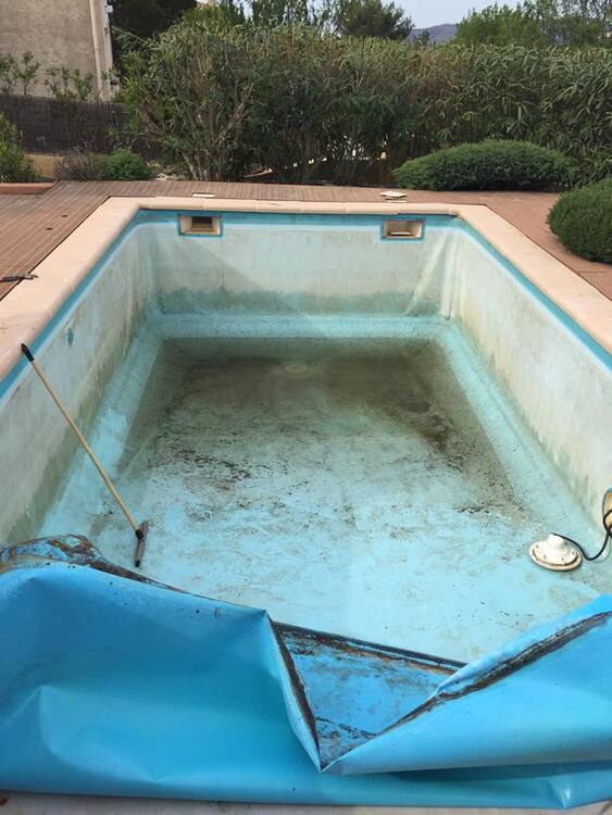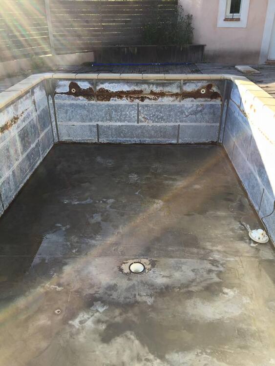 Suite à une fuite sur un skimmer cassé voici une rénovation d'une piscine béton avec remplacement des skimmers, peinture et installation d'une pompe à chaleur.