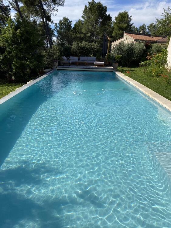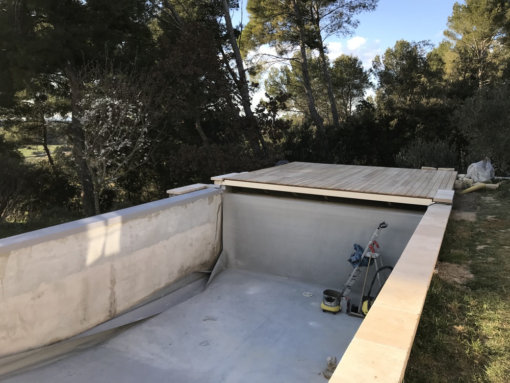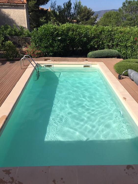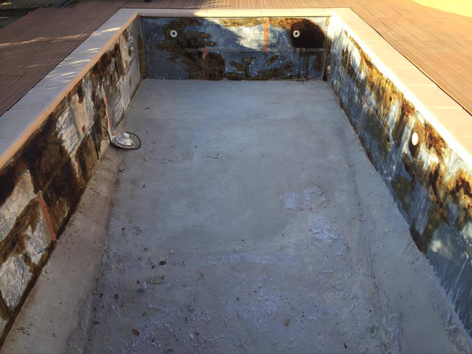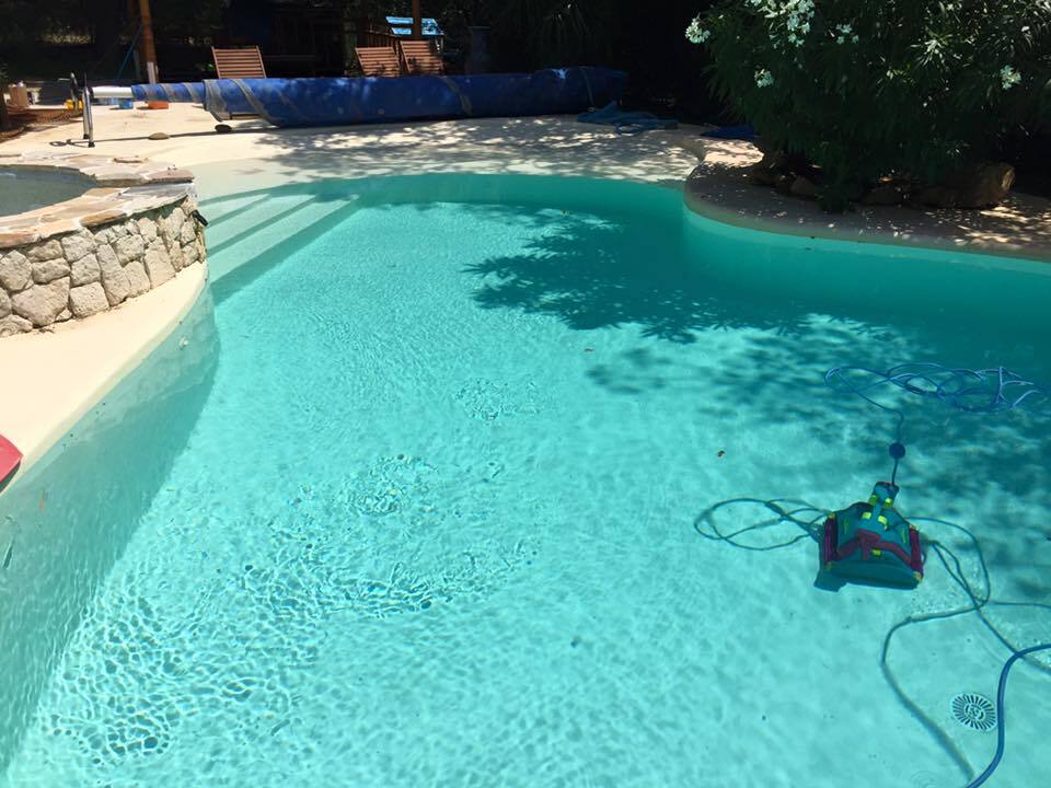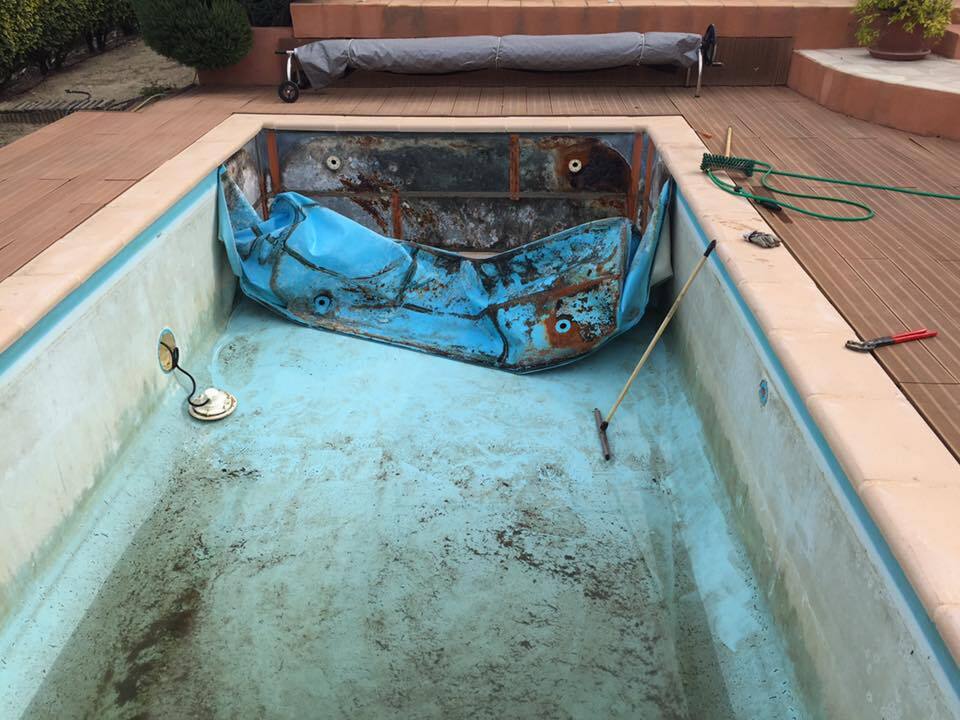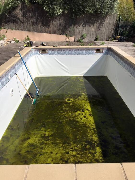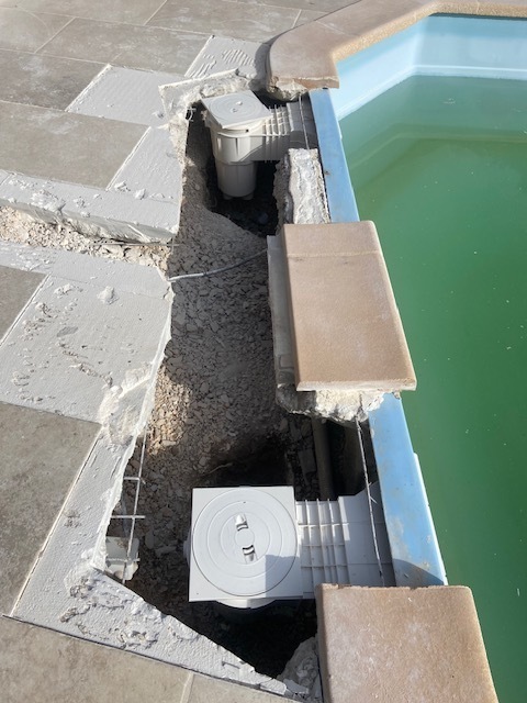 Suite à une fuite sur un skimmer cassé voici une rénovation d'une piscine béton avec remplacement des skimmers, peinture et installation d'une pompe à chaleur.